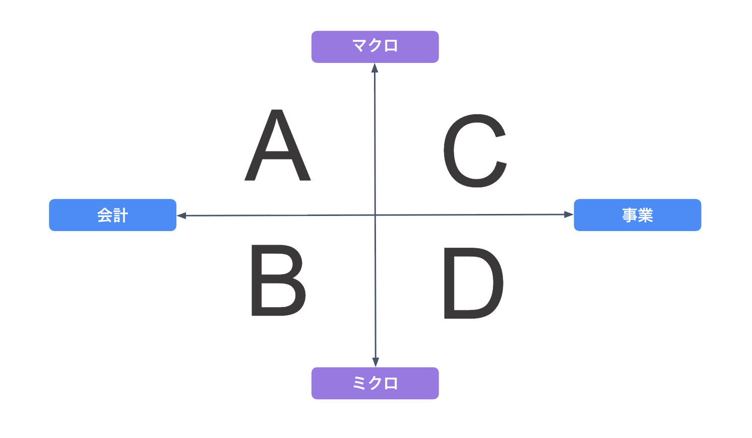 上側になるほど、マクロな視点となり、下側はミクロな視点ということになります。